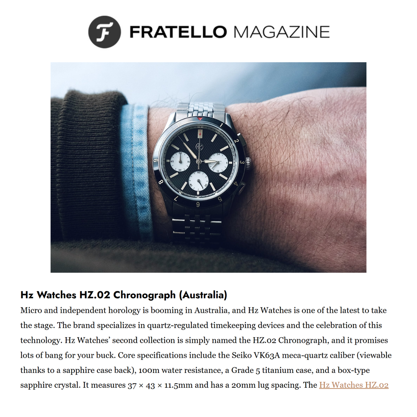 "Hz Watches represent some of the best-value and most interesting microbrand watches on the market, offering extremely impressive specs and levels of finishing for the price while unashamedly celebrating their quartz movements in a way that most brands, small or large, are afraid to."